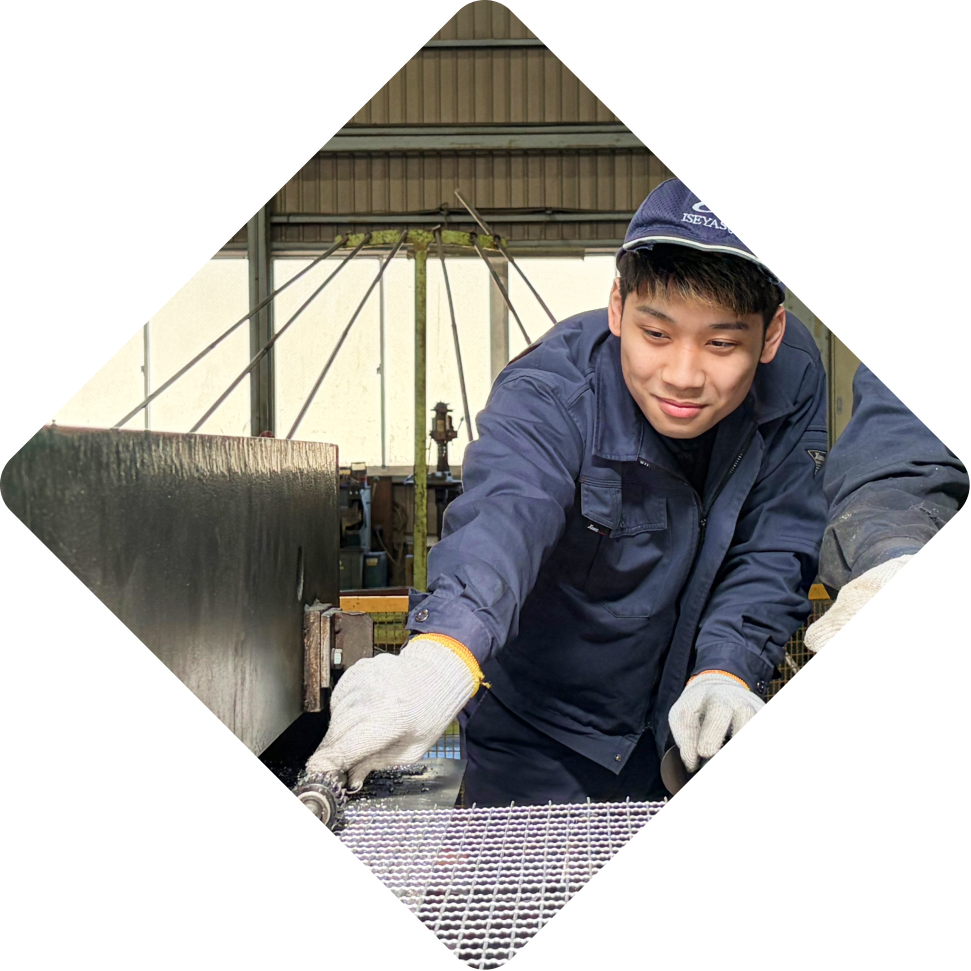 ISEYASUは1952年の創業以来、金網一筋で技術を磨き続けてきました。日本最大級のクリンプ金網製造力を持ち、設計から製造・加工まで一貫して対応できる体制を整えています。